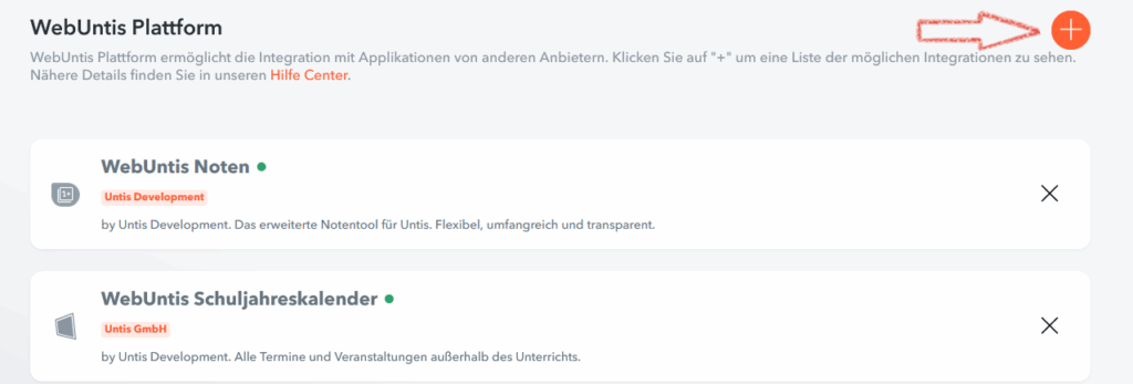 4. Dort sehen Sie alle Plattform-Apps, die Ihre Schule bisher aktiviert hat. Um Accidents at School hinzuzufügen, klicken Sie oben auf das + und wählen die App aus der Liste aus.
