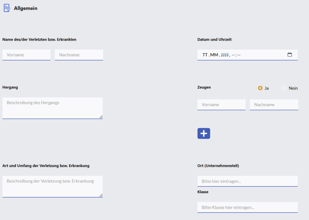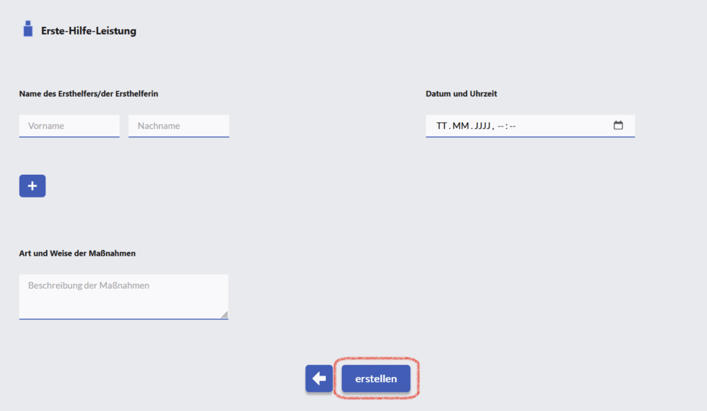 Mit Klick auf das + lassen sich weitere Zeugen oder Erste-Hilfe-Leistende hinzufügen.